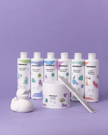 Sulfate-free shampoo with conditioner for adult cats and dogs. Its formula enriched with organic Argan Oil and Aloe Vera, moisturizes the skin and provides softness and shine to the hair.