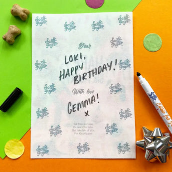 Scoff Paper edible ink pens are the bone-afide pooch-tastic pens suitable for writing your lovely messages to your four-legged friends.