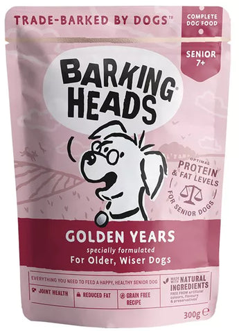 Barking Heads Golden Years is specially formulated for older dogs. This delicious grain-free recipe with added vitamins and minerals is slowly cooked to perfection, using only the best quality natural ingredients. Made with a delicious mix of fresh chicken, salmon, vegetables and herbs, this special recipe contains optimal protein and fat levels for your older dog.