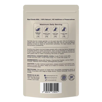 EASY TO PREPARE: Sprinkle over food or whisk into warm water to create a calming milk drink. Can be added directly to food or used for enrichment activities. Suitable as adult dog & puppy milk, also suitable for cats!