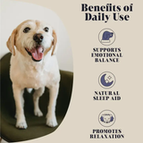 NATURAL SLEEP AID: A calming bedtime blend designed to tackle stress, hyperactivity, and anxiety. A natural blend containing tart cherry, valerian, chamomile, and lemon balm, perfectly combined with whole goat's milk to make a soothing dog milk drink/topper. 🥛