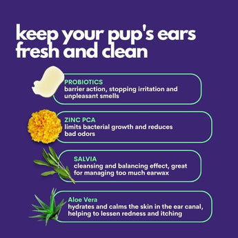 HOW TO USE: Apply a few drops of CLEAR into the ear canal and gently massage the base of the ear. Wipe away any excess with a clean pad. Use weekly or as part of your dog’s regular hygiene routine for fresh, healthy ears.