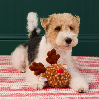 This jolly 2-in-1 interactive reindeer toy includes a removable bouncy ball encased in soft plush and is guaranteed to become your pup's favorite new plaything. Features both crinkle and squeak elements.