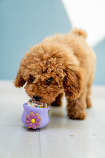 - Pairs well with nut butters, creamy treats, cheese chunks, smashed banana, dog biscuits, and more.