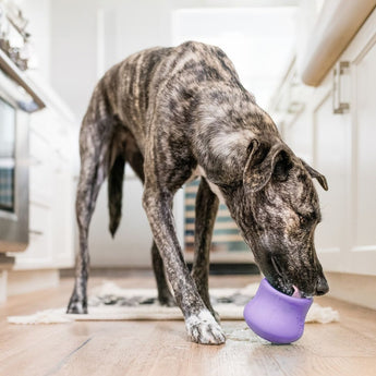 Did you know that playing with a treat toy can expend the same amount of energy as a one hour walk? The West Paw Toppl is a great way to entertain and challenge your dog in a safe way. It offers dogs a fun mental challenge, stimulates their brain and can help slow down fast eaters. Simply fill the treat toy with your dog’s favorite kibble or treats, and let them puzzle!