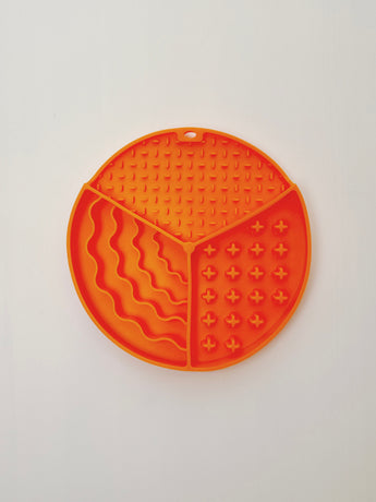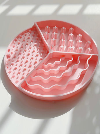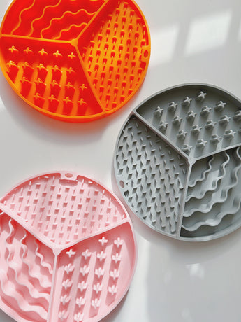 This lick mat accommodates both wet and dry food, making it suitable for all types of meals. Plus, it features various patterns and depths, keeping things interesting for your pup.