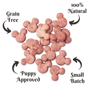 Disney Soft Bakes: Disney shaped biscuits inspired by Mickey & Minnie, the ideal treat for your BFF. Grain free, 100% natural, human quality gut friendly, natural source of protein, oven baked in small batches, no added sugar or salt, puppy friendly.