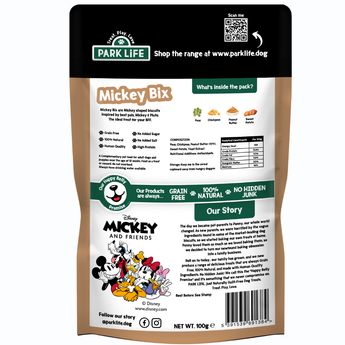 Mickey Bix are Mickey shaped biscuits inspired by best pals, Mickey & Pluto. The ideal treat for your BFF. PARK LiFE biscuits are made to the highest standards using just a few simple ingredients, meaning they're so wholesome, even humans can munch them!