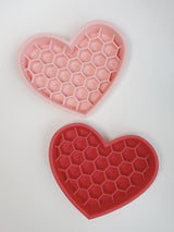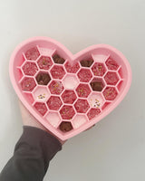 Dual-Sided Delight: Flip it over for a heartwarming surprise! The top side, a slow feeder with deep compartments each adorned with a little heart for added challenge. The bottom side transforms into a lick mat for a delightful, messy-free treat session.
