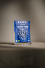 In this pack of Crunchy Fruits Blueberries, you will find the equivalent of 116 g of freeze-dried organic fresh blueberries (dehydrated at low temperature <0°C) to make them ultra crunchy while preserving their good taste and nutrients! Certified organic, gluten-free, 100% pure fruit with no added sugars.