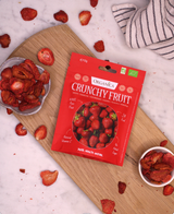 In this pack of Crunchy Fruits Strawberries, you will find the equivalent of 120 g of freeze-dried organic fresh strawberries (dehydrated at low temperature <0°C) to make them ultra crunchy while preserving their good taste and nutrients! Certified organic, gluten-free, 100% pure fruit with no added sugars.