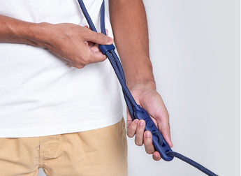 The versatile Deep Blue Hands-Free Leash can be used in 4 different ways. This hands free dog leash can be used as a waist leash and worn around your waist or as a crossbody leash- across your chest.