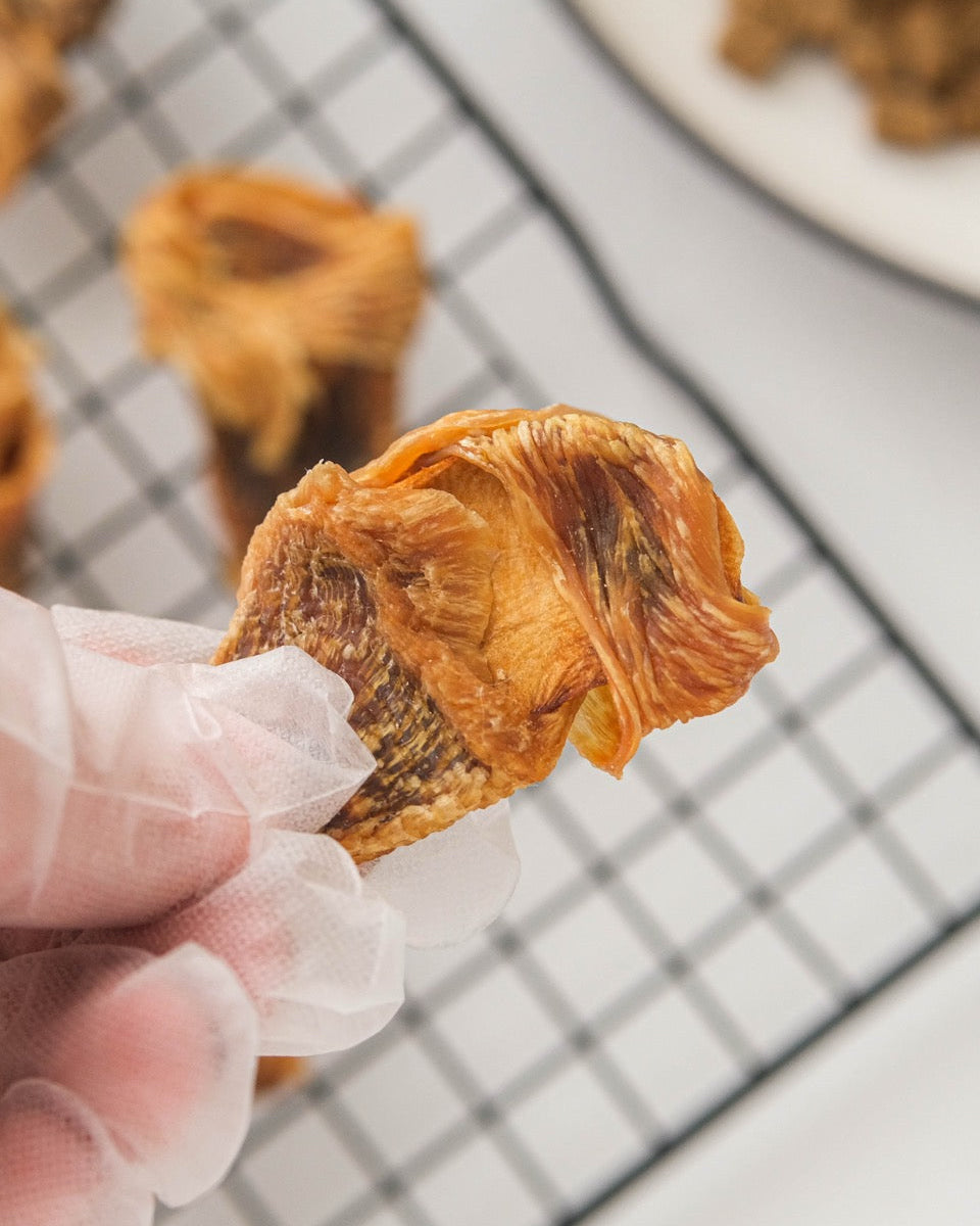 The treats are slowly air-dried at 50°C to preserve natural flavour and nutrients. Depending on the recipe, this process can take up to 24 hours.