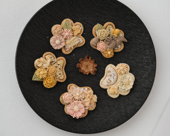 Each biscuit takes around three days to make. They’re shaped by hand, slowly dried for many hours, and finished with tiny decorations made from goat’s milk and natural fruit or vegetable powders.