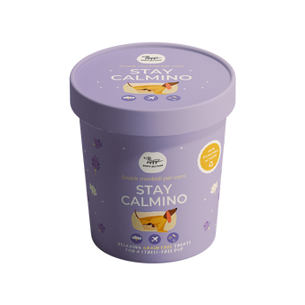 Meet Stay Calmino — the treat that helps your pup find their chill. These soft, semi-wet biscuits are packed with natural calming herbs like Valerian, Melissa, and Lavender, working together to soothe frazzled nerves and bring some zen vibes. Bonus: the gentle aroma adds a little aromatherapy magic that dogs love.